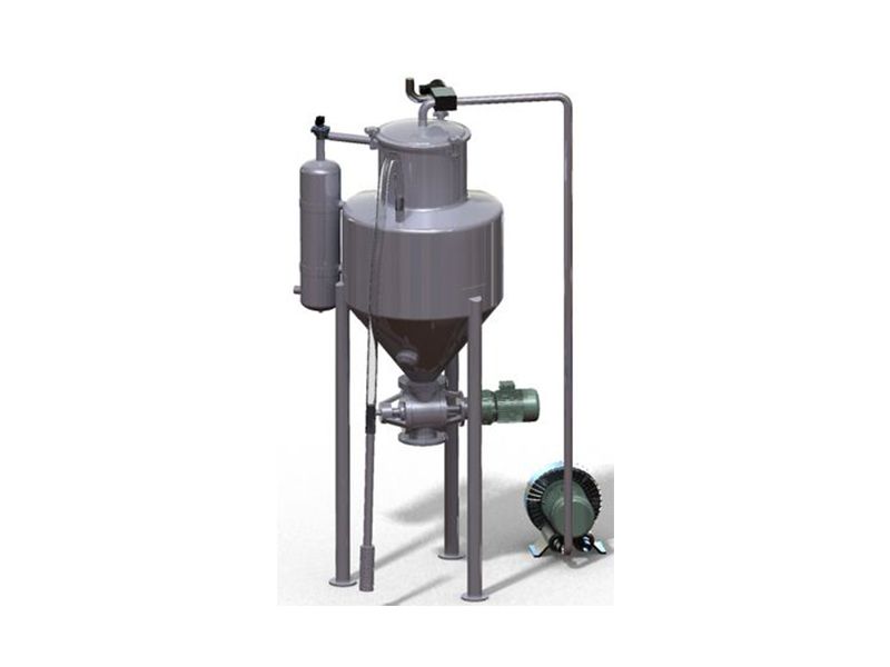 真空上料機(jī)由真空泵(無(wú)油、無(wú)水)、覆膜濾袋過(guò)濾器、壓縮空氣反吹裝置、氣動(dòng)放料門(mén)裝置、真空料斗和不銹鋼可調(diào)吸料槍、輸送軟管等部件組成。